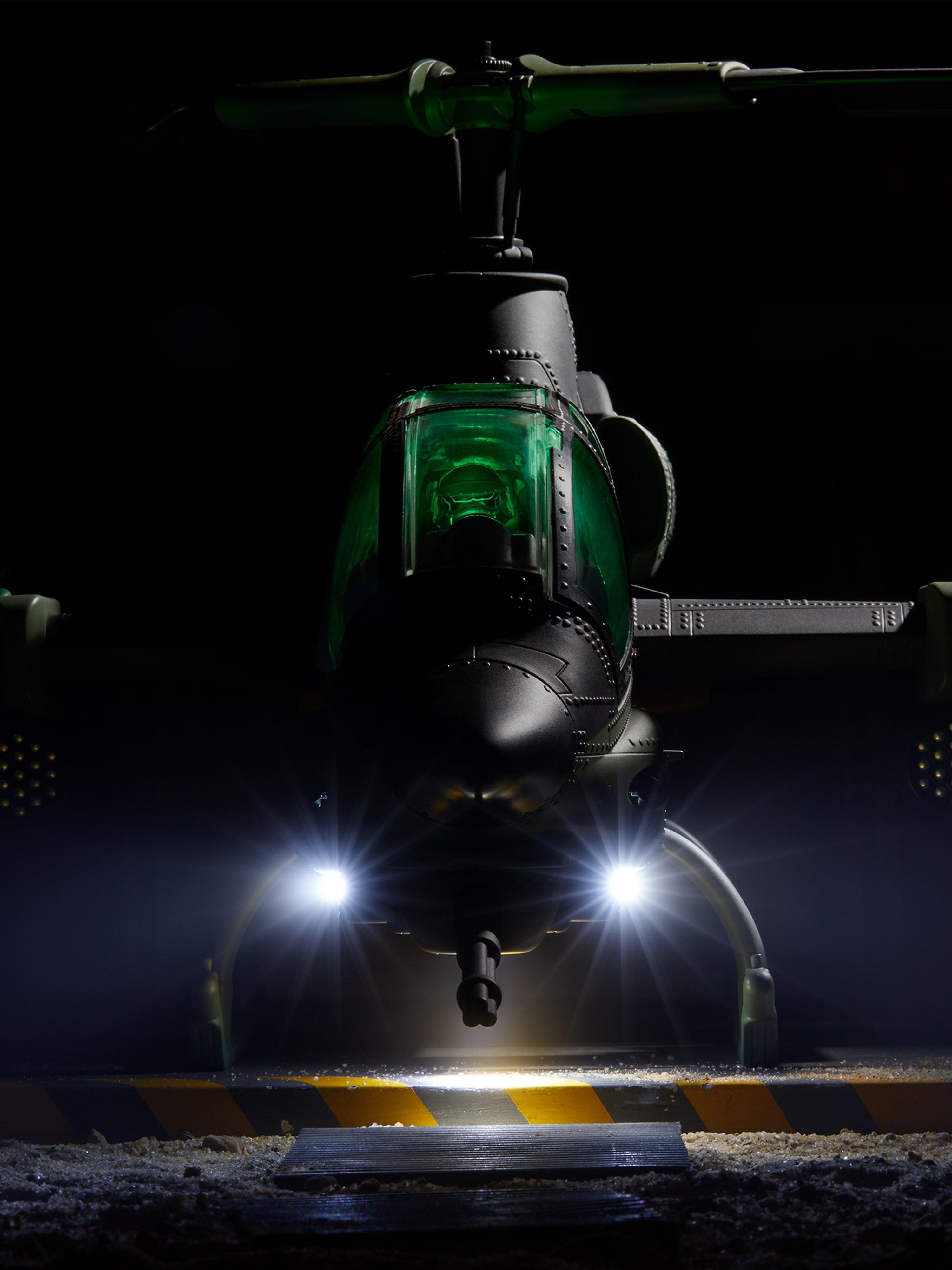 · Cannon Details: The 25MM Dragonbreath Rotary Nose Cannon rotates and can pivot up and down; and twin X-551 Mini-Cannon details below the cockpit increase the XH-1’s powerful attack capabilities.