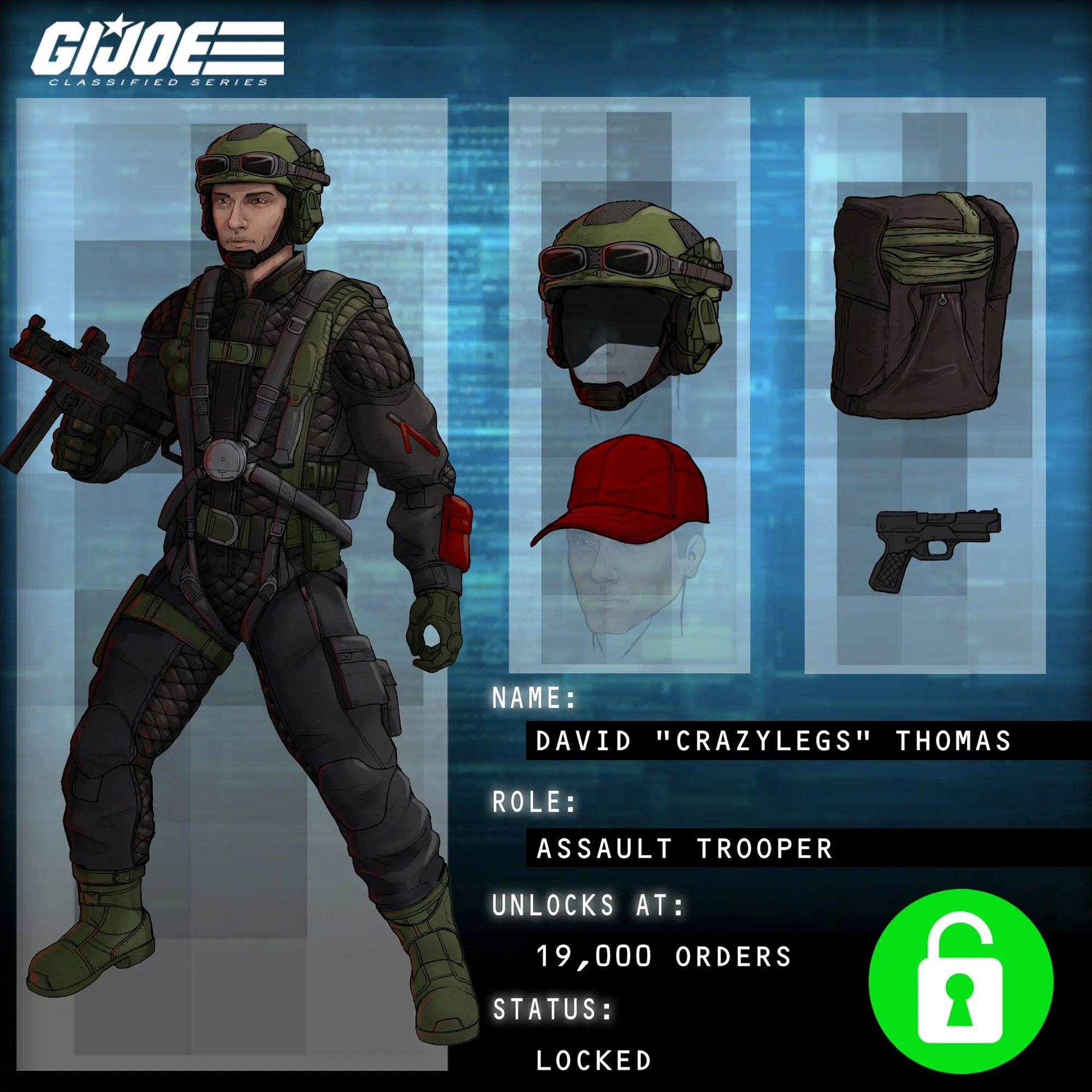 · 19,000 backers to unlock G.I. Joe Assault Copter Dragonfly (XH-1) Classified Recruit #3 - NIGHT FORCE DAVID “CRAZYLEGS” THOMAS