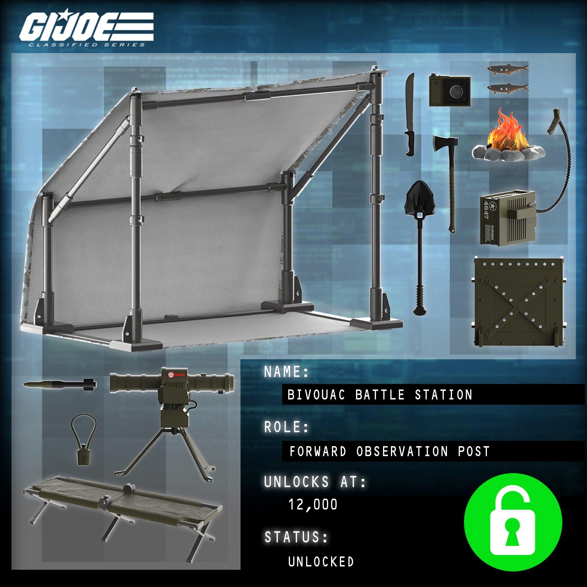 Further anticipating their ineffectiveness to resolve missions in a timely fashion, G.I. Joe has offered the Bivouac Battle Station should the Campaign bafflingly reach 12,000 backer orders thus unlocking Tier 2. With this add-on, Joes are able to bunker down with a bevy of additional gear and weaponry that conveniently stows in the rear cargo compartments.